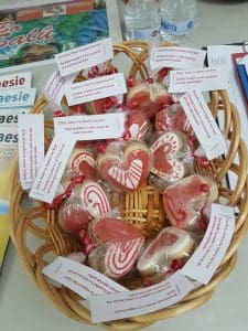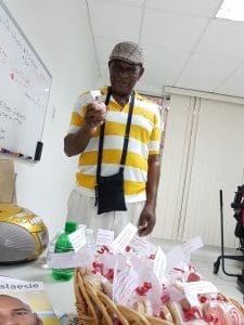 We believe that everyone should share love everyday and when there is a special occasion, we can do that a little differently. So we made cookies shaped out if hearts and put a pair of cookie in a bag.We had for members even the volunteers. On the bag we put a note including their name and the following message in papiamentu: