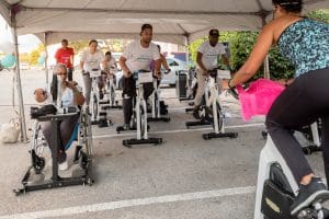 Danki na sponsernan manera Coca Cola, EWT, Satex Agencies, Bo Frei Agencies, Mangusa, Cost u less, Esperamos, Lovers i tambe Licores Maduro ku a sostene e evento ku nan produktonan pa kada partisipante por a sigi den moveshon ku e otro seshonnan. Semper e seshon di Pump-on-Wheels ta speshal i e biaha aki danki na kompanianan ku a sponser karchi por tabata tin mas hende den ròlstul ku a partisipá i tambe un grupo ku pa turno tabata subi e hancycle pa por a hasi spinning huntu ku e otro gruponan di spinning. Artistanan i personanan den media a uni ku e kousa pa bai hinter un ora di spinning. Por a konta ku Rachid Felida, Nicole Maduro, Axel Pikero, dj Jowy, Leo Elizabeth, David Hugo i tambe Sherry Koeijers.
