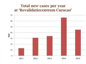 Most people that gets a spinal cord injury in Curacao goes to ‘Revalidatie Centrum Curacao’ for rehabilitation and we are receiving per year data of how many people get treated with spinal cord injury at the rehabilitation center here in Curacao. The data shows that there is an average of 30 people per year between 2011 and 2015.