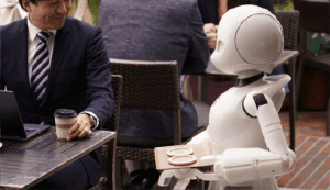 In terms of how the robots were controlled, computer-assisted operations were carried out remotely, the system responding to subtle eye movements which translated into coordinating the movements of the robots. They were able to pick up objects, move throughout the café space, and even carry out verbal interaction with the customers.