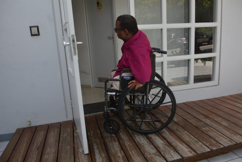 Have you ever had to stop mid-stride and try to figure out how to enter a building? Imagine you reach the front door and suddenly realize that it is three feet off the ground, with no steps. How would you climb through? That’s exactly what happens when someone in a wheelchair tries to move around on the island. He or she has to constantly figure out how to get from point A to point B. Sometimes it’s relatively easy to reach ‘point B’, as some buildings have designated handicapped parking slots available, but is that enough? Regretfully, the answer is no. Often, once the wheelchair reaches the front door of a building, there are other challenges to deal with, such as steps with no ramp alongside it, a revolving door or a multi floored building with no elevator.
